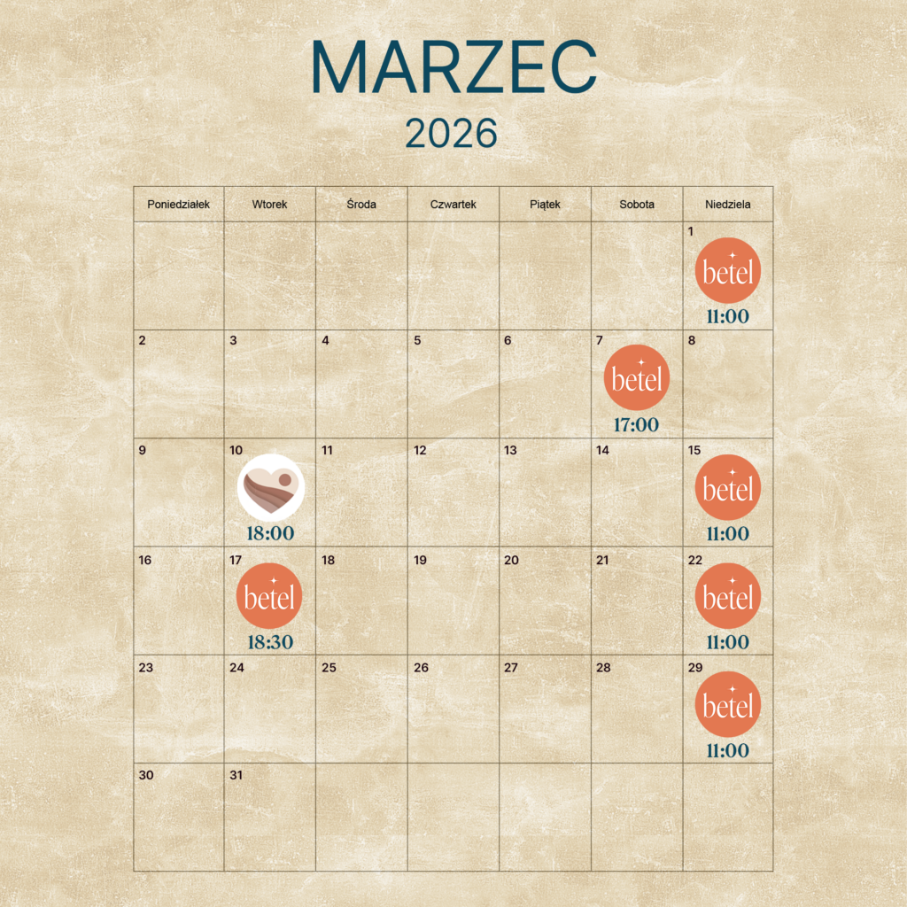 Z kolei w trzeci wtorek miesiąca na sali koncertowej na 1 piętrze, tam gdzie teraz odbywają się regularne spotkania, będziemy mieć nasze dodatkowe Betelowe spotkania. Zapytacie czego się spodziewać na nich? Otóż sami jeszcze nie do końca wiemy, ponieważ chcemy stworzyć przestrzeń dla Ducha Świętego. Zapewne będzie trochę modlitwy, trochę uwielbienia, a to wszystko, żeby nasiąkać Bożą obecnością – serdecznie zapraszamy 17.03, aby wspólnie to odkrywać.